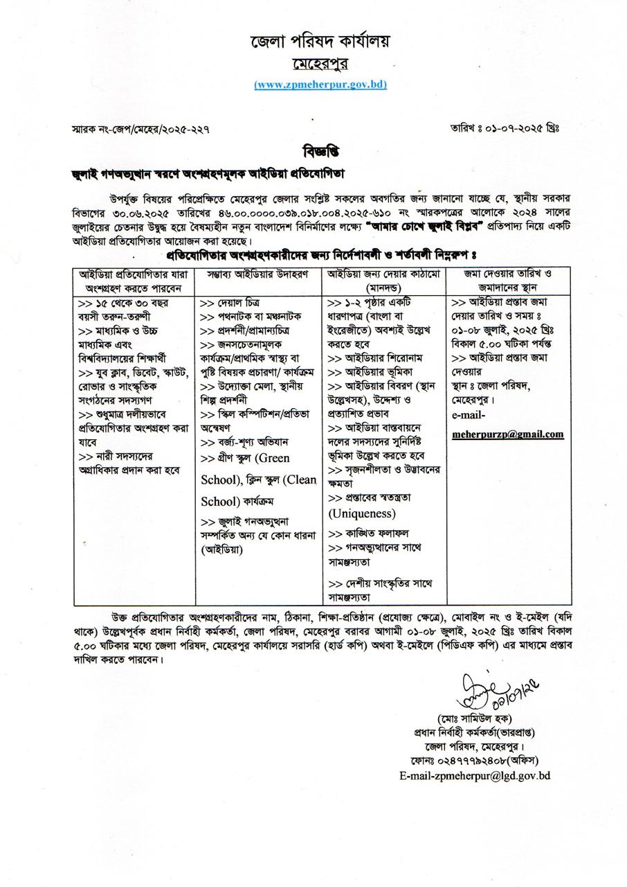 জুলাই গণঅভ্যুত্থান স্মরণে অংশগ্রহণমূলক আইডিয়া প্রতিযোগিতা
